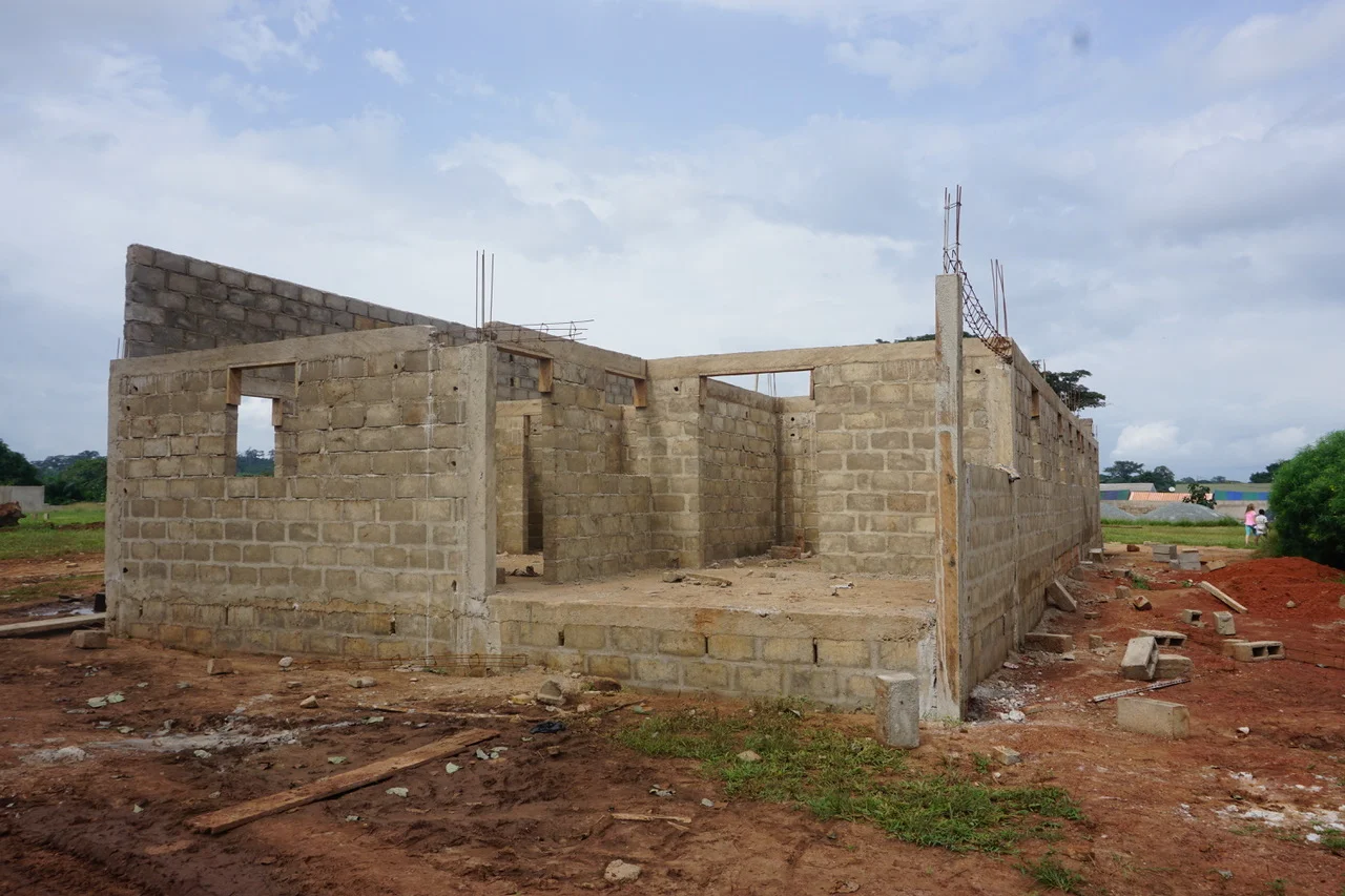 The Jacksons traveled to Abidjan last week for supplies and when they returned to Tanda they found major progress at the construction site. The walls are almost complete on the residence and have been started on the first children's home. We have received a bid for the roof, so work should begin shortly. This week Jeff will mark on the walls where he wants electrical outlets, sinks, and cabinets.